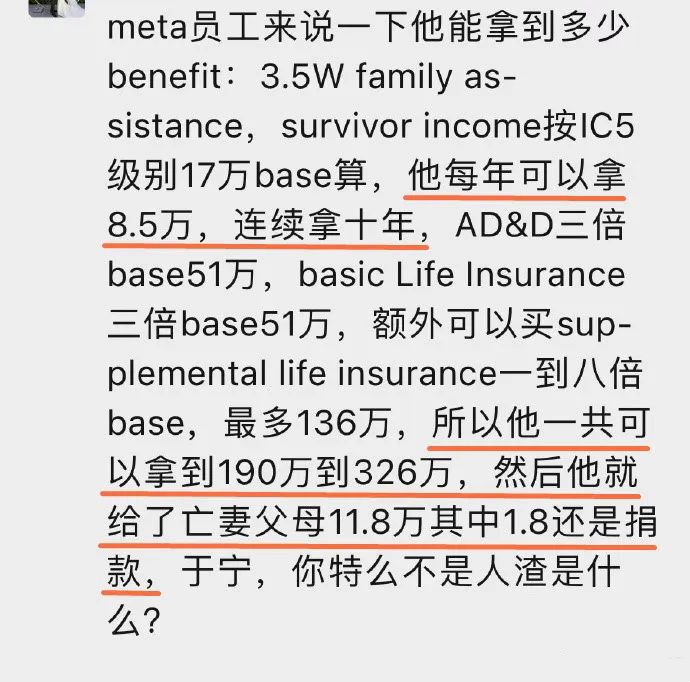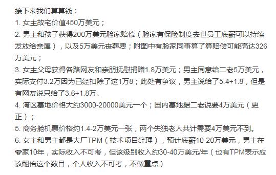 女人2021年5月去世,遗产全部给了两个未成年的孩子和老公,此外女人预计还将获得脸书200万美金的员工保险赔偿。