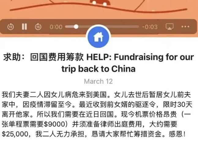 孤立无援,没钱,又不懂英文的两位老人只好在群里向女儿的同学和同事发起求助,此事得以公开。