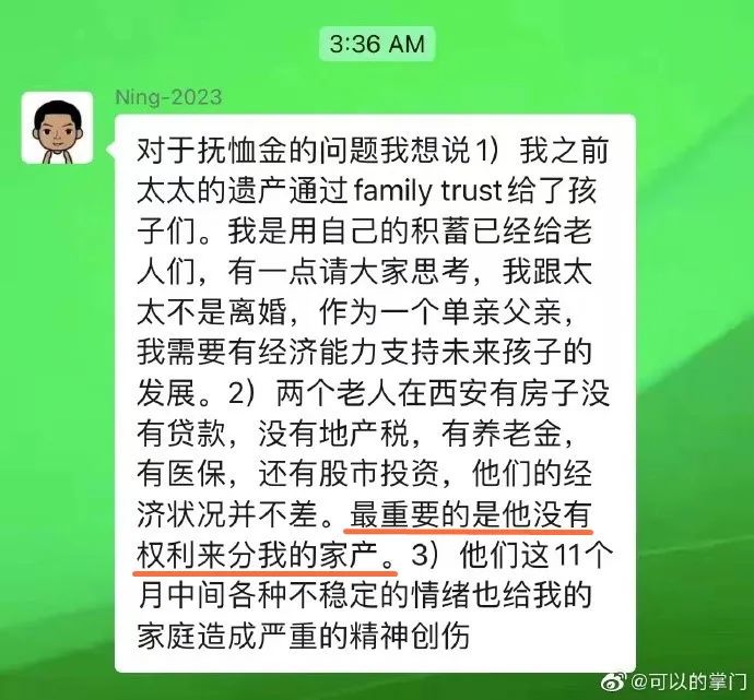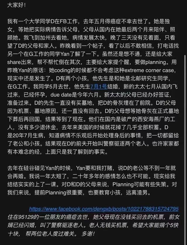 完整图在这里事情在北邮同学群和北美华人圈内传开后,很多人对两位老人伸出了援手,而且希望男人能看在亡妻的份上妥善解决这些家庭内部事务。