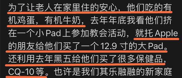 还是那句话,是人都干不出这事来。岳父母吃了家里一点有机牛奶、有机鸡蛋,他走后门托人给他们买了个便宜pad这点事也当做自己的功劳拿来说,你领着新欢进门凌迟他们情感的时候怎么不说呢?