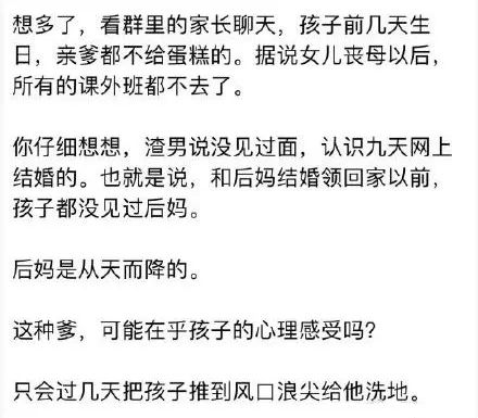认为女儿儿子非常成熟睿智、懂事贴心,全程见证他找新太太,那是成熟吗?那是孩子没了妈再怕失去亲爹的恐惧啊。