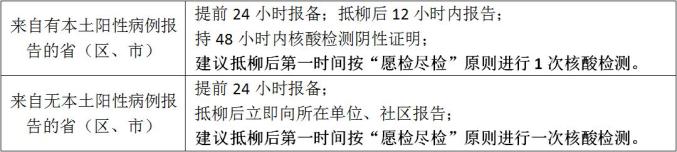 *风险排查和管理对象:自确定为中高风险地区或自公布本土疫情之日往前14天的返柳来柳人员。