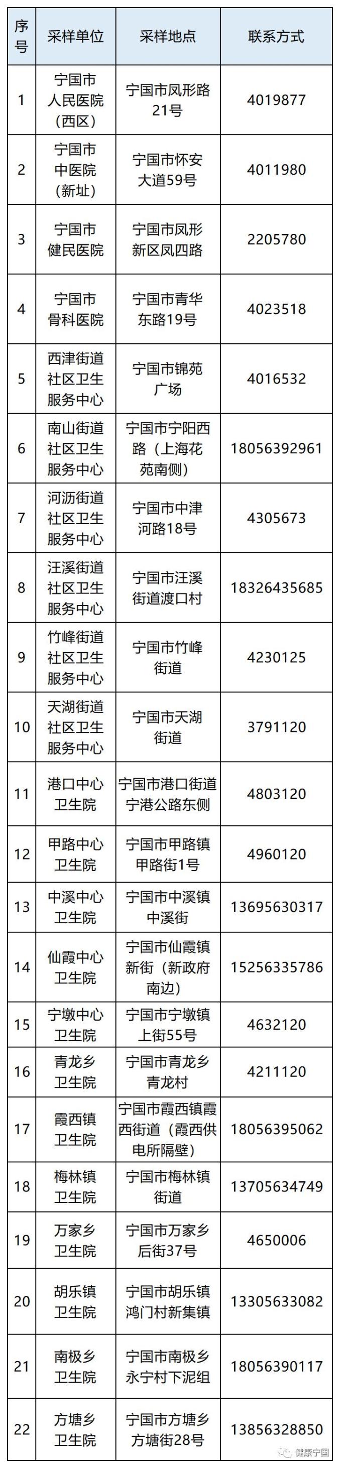 4.宁国市各核酸采样点: