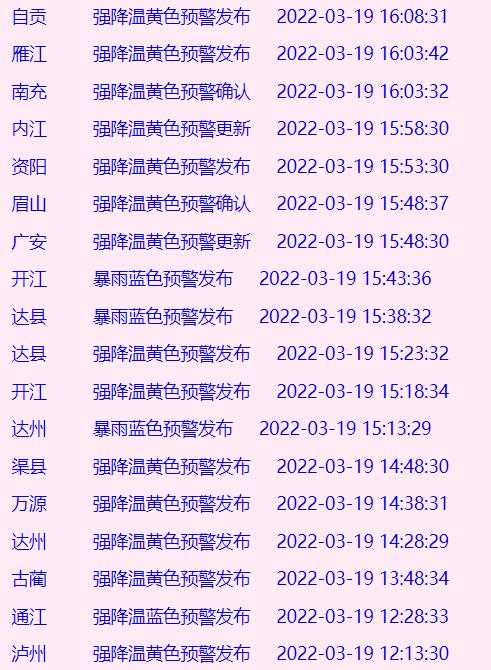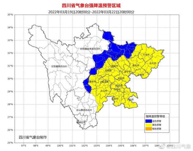 据四川省气象局,3月19日起,四川多个市州发布了31条强降温或暴雨预警。