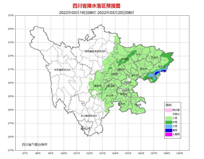 今天白天到晚上:盆地西部阴天有小雨,盆地其余地方多云转小雨,其中广元、绵阳、达州、广安4市有中雨,达州、广安2市有大雨到暴雨,受冷空气影响时,盆地有3~5级偏北风,山口河谷风力可达6级或以上,局部地方有短时强降水、雷暴大风或冰雹等强对流天气;川西高原和攀西地区以晴间多云天气为主。24小时内,最高气温:北部24~27℃,南部27~30℃;最低气温:北部12~14℃,南部15~17℃。