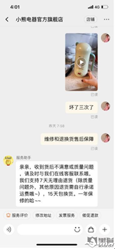 消费者在天猫渠道购买的小熊品牌豆浆机,不到一年坏了三次。