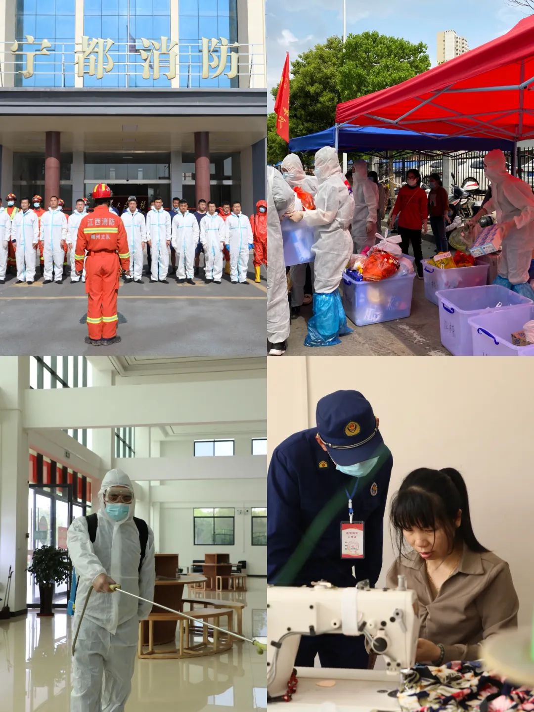 在九江,永修县消防救援大队成立“抗疫突击队”。他们深入县各隔离点,帮助运送物资,开展全面消杀,并赠送灭火器120余具。在县隔离点,大队还安排6名消防救援人员24小时执守。
