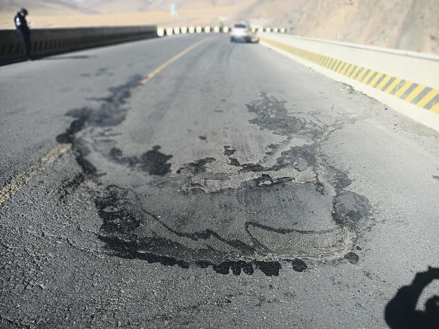 玉树至西宁 下行线751km+350m处路面沉陷。