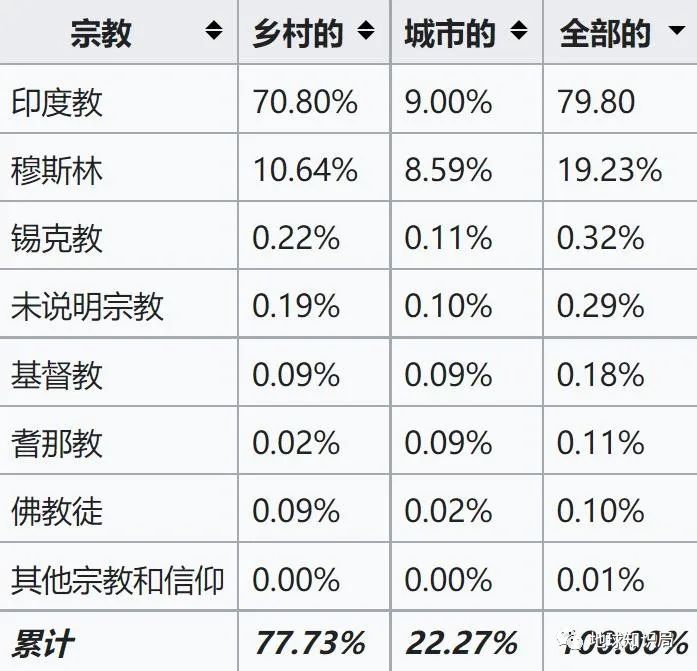 2011年,北方邦人口普查统计的信仰比例(图:wikipedia)▼