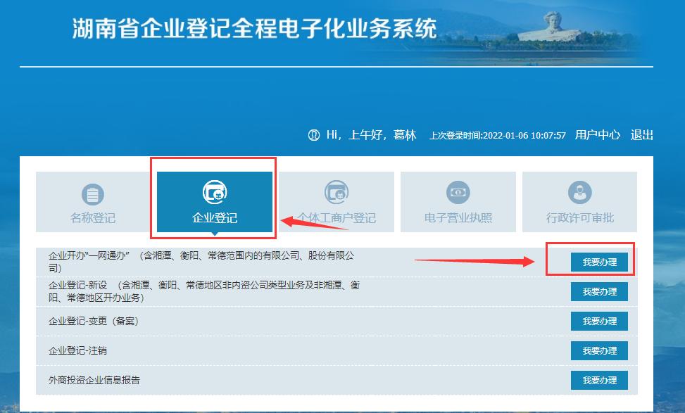 例如,企业设立:注册→登录→选择办理事项(企业登记)→填写基本情况→手机使用“湖南省企业登记全程电子化业务系统”app电子签名→业务系统提交→领取营业执照(可选快递领取)