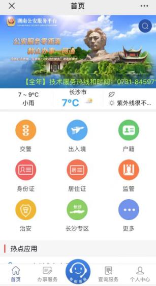 4、身份证业务、户籍业务、居住登记等人境业务可网上全流程办理,市民群众可以通过“我的长沙”app或者微信小程序、“长沙公安”微信公众号、湖南公安服务平台(微信小程序)办理。