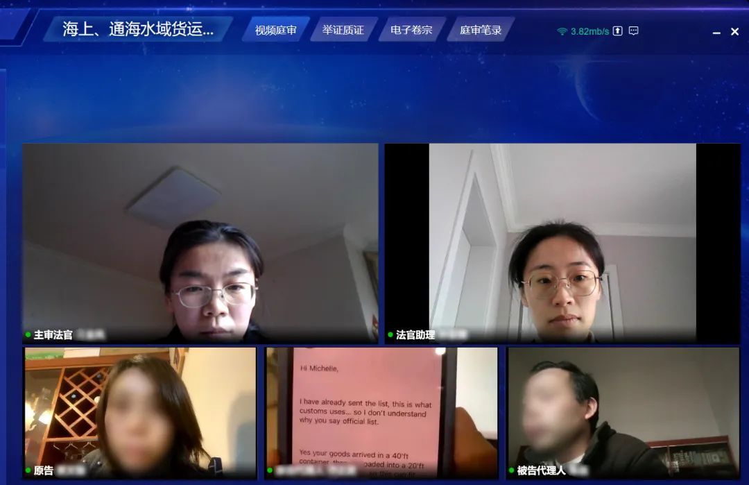 庭审过程中,由于原告主张计价收费体积与涉案货物实际体积出入较大,并提交了收货人与被告委托的当地运输机构的邮件往来记录作为证据。为确认该证据的真实性,法官远程连线位于澳大利亚墨尔本的收货人,让其实时登录邮箱演示该组证据,该组证据经双方当事人当场确认真实有效。辩论环节,原、被告围绕合同计费方式及货物的损失赔偿额这一争议焦点展开了激烈的辩论,双方当事人的诉讼权利均得以充分行使。