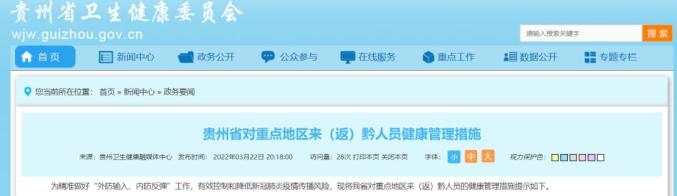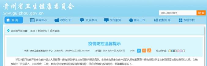 3月22日,贵州省卫生健康委发布最新疫情防控温馨提示,具体如下: