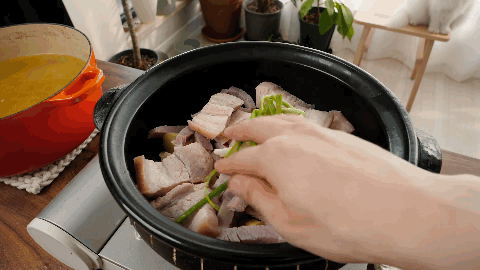 小火慢笃,砂锅永远是腌笃鲜的标配。图/b站柴犬老丸子