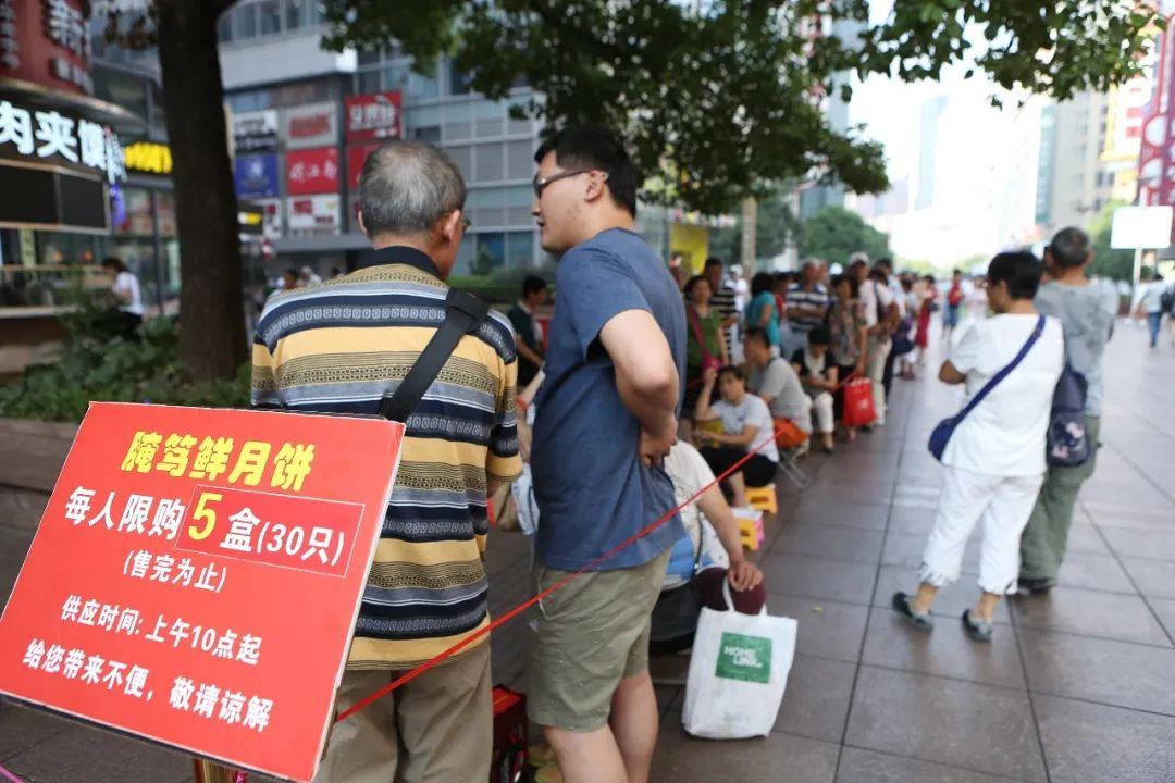 上海人排长队抢购的腌笃鲜青团和月饼。图/视觉中国
