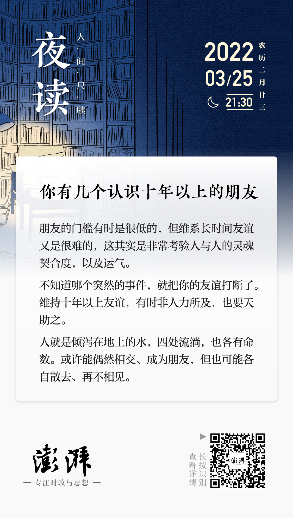 夜读|你有几个认识十年以上的朋友