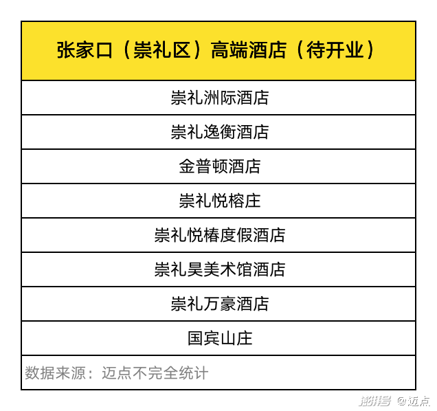 与北京相比,张家口的存在感并不强。在目前的广泛认知中,张家口是依托2015年和北京携手获得了冬奥会举办地之后才走进了人们的视野,张家口崇礼才以此成为旅游和投资的热土。这种认知并非没有现实依据,根据迈点研究院统计,目前张家口高端酒店数量稀少,五星级以上酒店仅有6家,最早开业的就是2017年张家口华邑酒店和张家口崇礼太舞威斯汀源宿酒店。