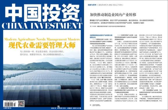 原标题:《【观察与思考】加快推动制造业国内产业转移|中国投资》