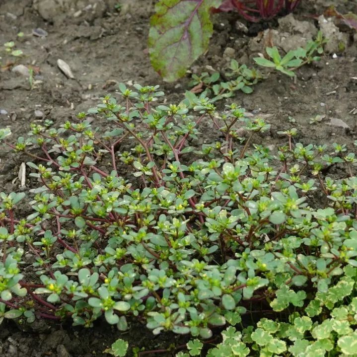 马齿苋,又名蚂蚱菜、长命菜、耐旱菜等,有因叶青、梗赤、花黄、根白、子黑,被称为“五行菜”。马齿苋可以凉拌、炒制食用,在北方一些地区人们用马齿苋拌上面糊烙饼或蒸团子,是当季的时令小吃。