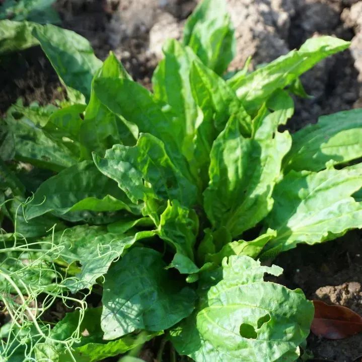 车前草是车前科车前属的一年生草本,叶基呈绽开的莲座状,叶片摸上似纸的质感,呈椭圆形、椭圆状披针形或卵状披针形,且叶片肥厚,嫩时匍匐于地,长大后微微竖起来,长似猪八戒的招风耳,所以又被称为“猪耳菜”。采摘车前草作为蔬菜来食用。通常食用车前的嫩叶,洗净并用沸水煮过后可炒食。