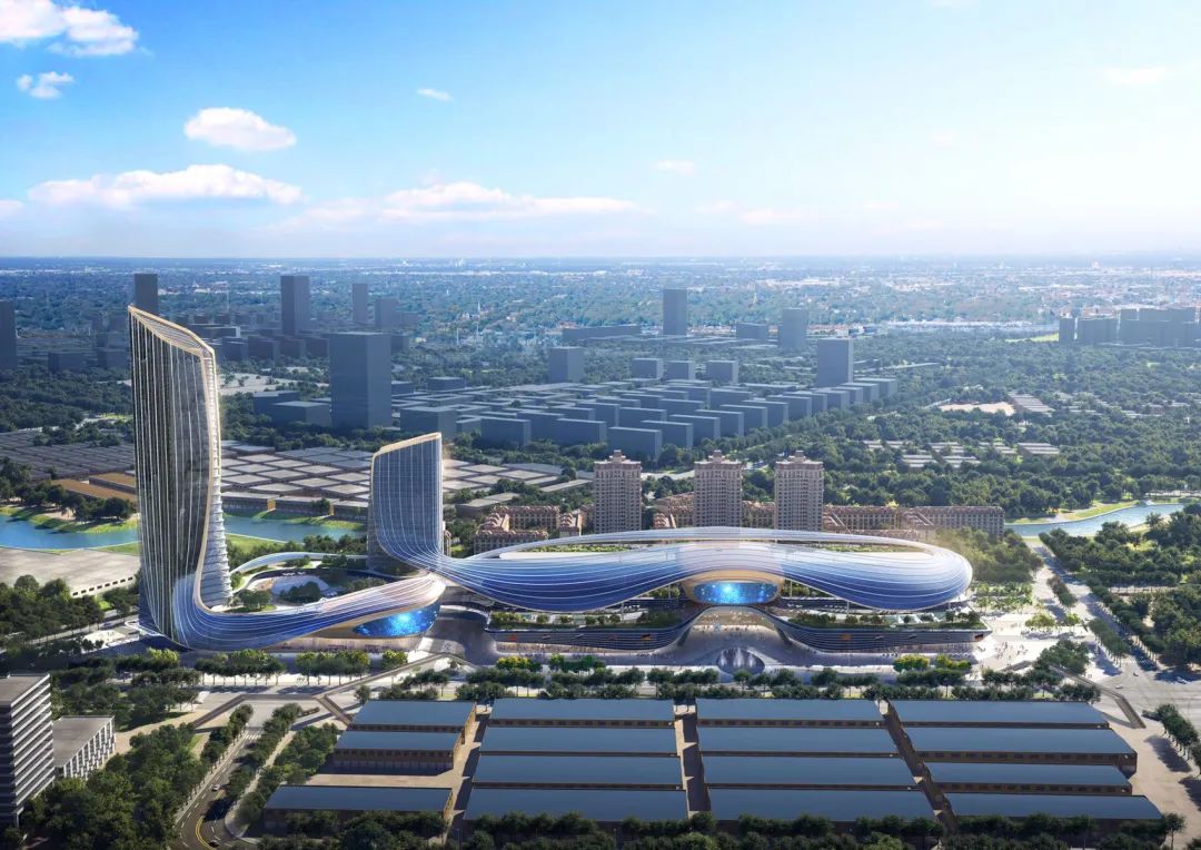 交易展示中心项目位于成都国际铁路港,由成都国际铁路港经济技术开发区建设发展有限公司投资建设。项目占地181亩,总建筑面积42万平方米,整合布局展示交易中心、国际会议中心、演艺中心、五星级酒店、总部办公、精品酒店、人才公寓、邻里商业中心、市民文化中心等功能。