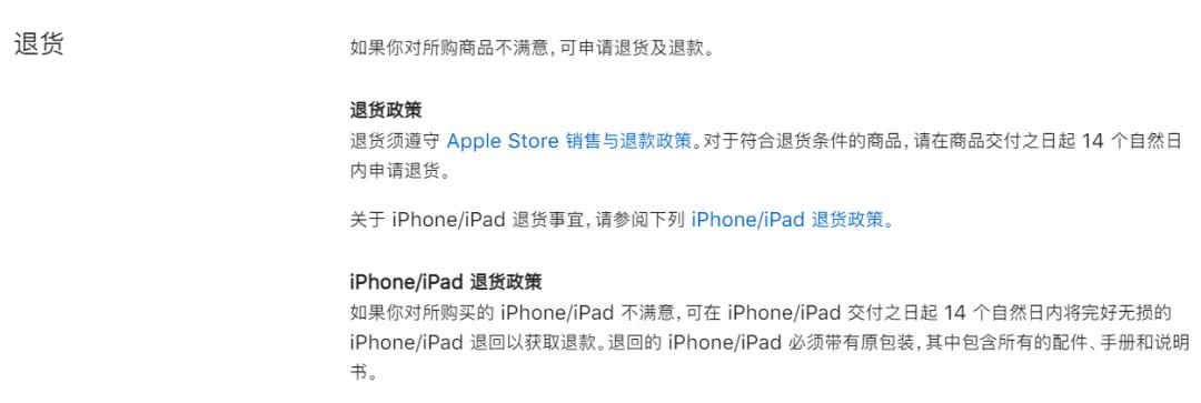 只要是在苹果官网购买的产品,包装完好产品无破损,就能在 14 天内都可以进行一个款的退。