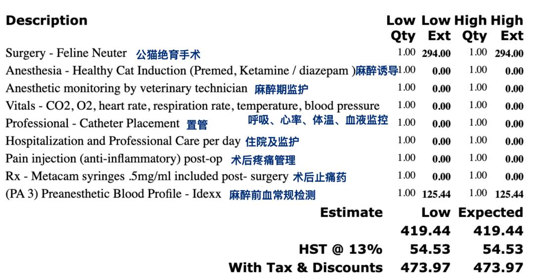 仅仅是手术本身就要700刀哟!麻醉前的血常规检查依然是125刀!加起来再乘上税已经超过一千刀了,合人民币超过五千块钱!!!Σ( ° △ °|||)我会说我一个月房租才四千不到嘛!割在崽蛋,痛在我心!