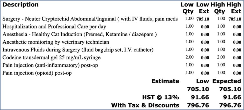 于是我了解了下加拿大割蛋的操作:同样身在国外的小伙伴,如果需要给猫猫做绝育的话,推荐先查一下自己所在的城市有没有相关的社会福利项目哦!比如我所在的这个城市,有针对低收入家庭的宠物绝育项目,价格在30-50刀左右;城市的动物保护协会也在提供公益性质的服务,母猫185刀,公猫165刀,合人民币均在一千块钱以下,术前检查和术后观察什么的都包含在内了;另外有一些动物保护所也会提供绝育服务,大家可以自己搜一把!私人兽医诊所的价格至少是这些项目的两倍不止。