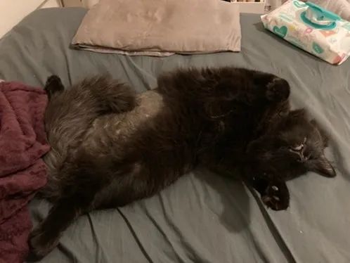 而他那被剃秃的肚毛直到同年夏天才勉强长回来。不过他本喵毫不在乎,期间仍然叉着大腿睡大觉。