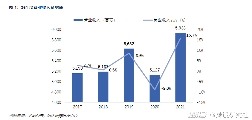 财报显示,361度2021年营业收入人民币59.33亿元,实现毛利润人民币24.72亿元,同比增长27.3%。