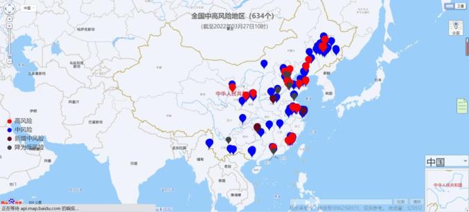 中风险地区522个,其中黑龙江省哈尔滨市10个;广东省深圳市3个,东莞市3个;江苏省连云港市28个,常州市11个,南京市10个;内蒙古自治区呼和浩特市1个,通辽市1个;云南省德宏州3个,红河州2个;上海市17个;吉林省延边州3个,吉林市56个,长春市127个;山东省青岛市3个,威海市9个,淄博市6个,潍坊市2个,滨州市4个,烟台市4个;河北省唐山市1个,沧州市1个,廊坊市2个;甘肃省兰州市1个;陕西省西安市1个,宝鸡市9个,汉中市1个,铜川市2个;河南省焦作市13个,周口市2个,漯河市3个;天津市8个;重庆市3个;福建省泉州市38个,漳州市3个,莆田市42个,厦门市3个;辽宁省大连市45个,沈阳市3个,营口市5个;安徽省铜陵市4个,马鞍山市2个;北京市2个;江西省南昌市3个;湖南省怀化市9个,长沙市9个,邵阳市1个;广西壮族自治区钦州市5个。