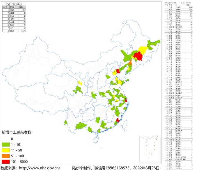 4. 全国本土新增1219+4996,高56中522,全国疫情信息发布(3月28日)