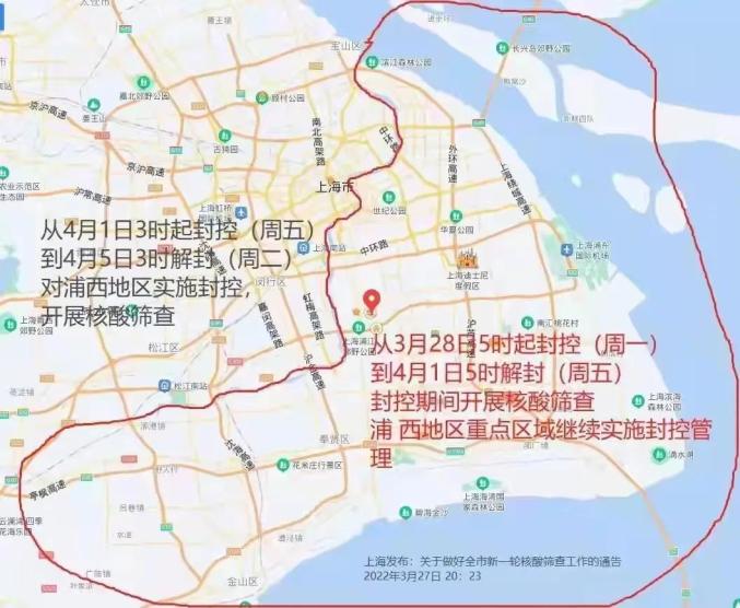 第一、3月28日5时起,我市以黄浦江为界分区分批实施核酸筛查。第一批,浦东、浦南及毗邻区域(包括浦东新区全区,奉贤区全区,金山区全区,崇明区全区,闵行区浦锦街道、浦江镇,松江区新浜镇、石湖荡镇、泖港镇、叶榭镇)先行实施封控,开展核酸筛查,4月1日5时解封。同时,浦西地区重点区域继续实施封控管理。第二批,4月1日3时起,按照压茬推进的原则,对浦西地区实施封控,开展核酸筛查,4月5日3时解封。