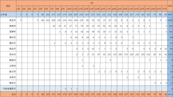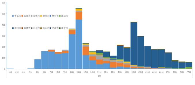 6、山东:2022年3月27日0时至24时,全省报告新增本土确诊病例5例,其中滨州3例、淄博1例、泰安1例。新增本土无症状感染者58例,其中滨州38例、潍坊16例、青岛1例、泰安1例、威海1例、聊城1例。无新增境外输入确诊病例。山东近期疫情逐步受控,青岛疫情基本结束,目前主要为滨州疫情,最新发现疫情为济南疫情。本系列疫情存在多个传播链。一是滨州疫情,省外输入与本省外溢并存,主要涉及4 条传播链。滨州每日新增感染者数量已连续5天下降,全部出自管控区、封控区和集中隔离点,防控措施的效果正逐步显现。二是临沂疫情,疫情暂时可管可控。三是青岛其他地区、威海、淄博、烟台疫情,疫情已得到初步控制。四是德州、济南疫情。23 日德州无新增感染者,疫情已得到有效控制。五是青岛莱西暴发学校聚集性疫情,已实现社会面清零。各地需继续加大重点人群核酸筛查频次,重点加强学校缺勤缺课检查、晨午检和健康监测,严格落实应隔尽隔,加强医院感染控制与管理。滨州需进一步规范网络直报关于发现方式的填报内容。