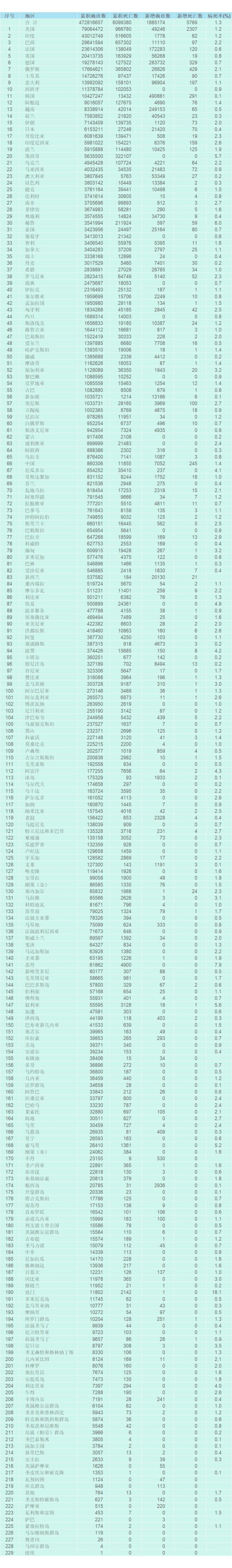 累计收到港澳台地区通报确诊病例306932例。其中,香港特别行政区284081例(出院42632例,死亡7252例),澳门特别行政区82例(出院80例),台湾地区22769例(出院13742例,死亡853例)。