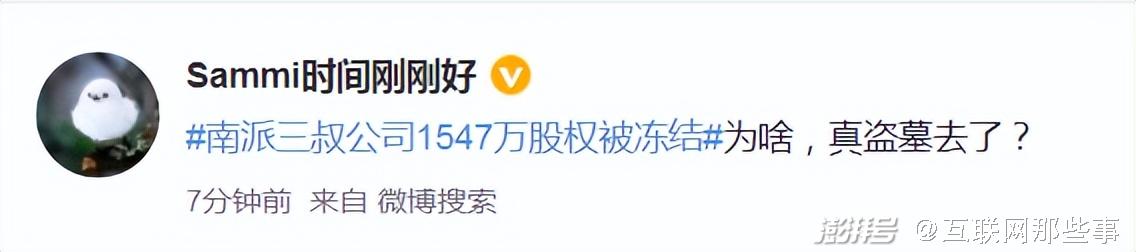 南派三叔时隔多年又上热搜,其公司被曝冻结超1500万股权,除了普通群众们在淡定吃瓜,几乎所有的“稻米”蚌埠住了。