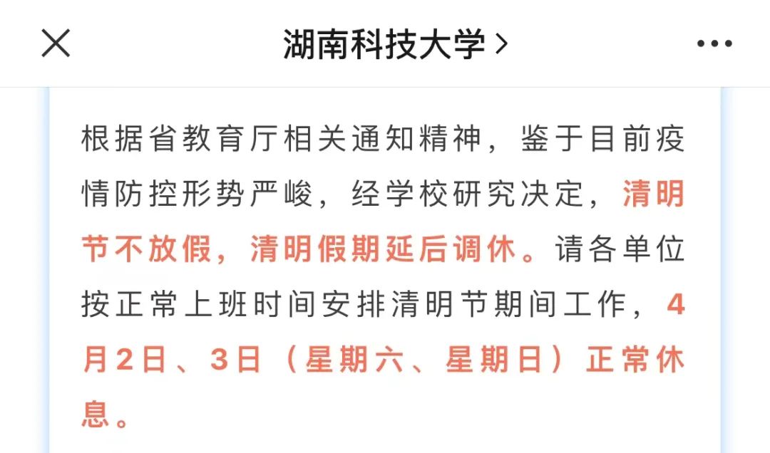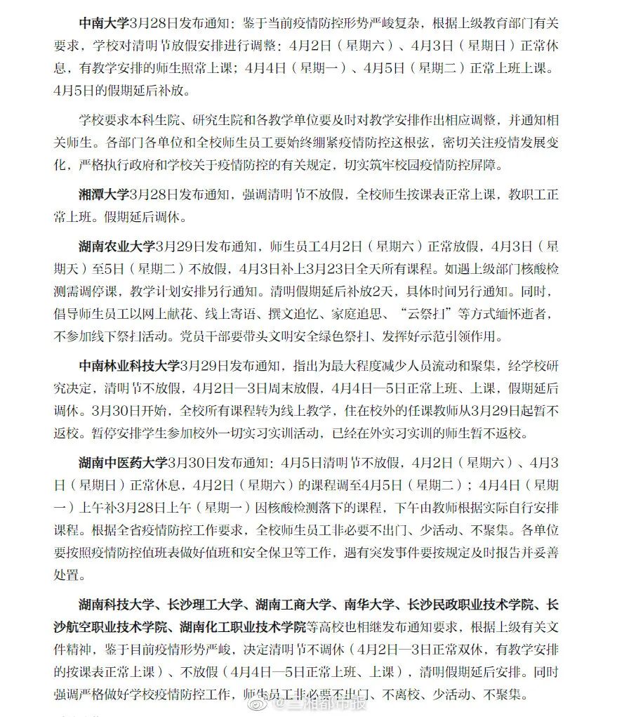 近日,多所高校对清明节放假做出调整,据不完全整理: