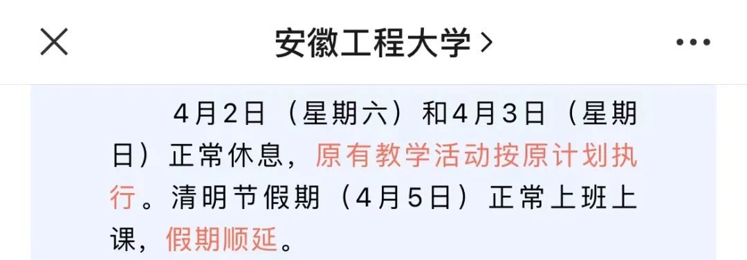广西科技大学:4月2日(星期六)、4月3日(星期天)休息,4月4日、5日、6日正常上班上课。假期调整到2022年暑假安排。