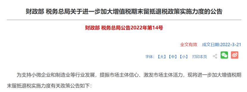 大规模留抵退税政策将实施