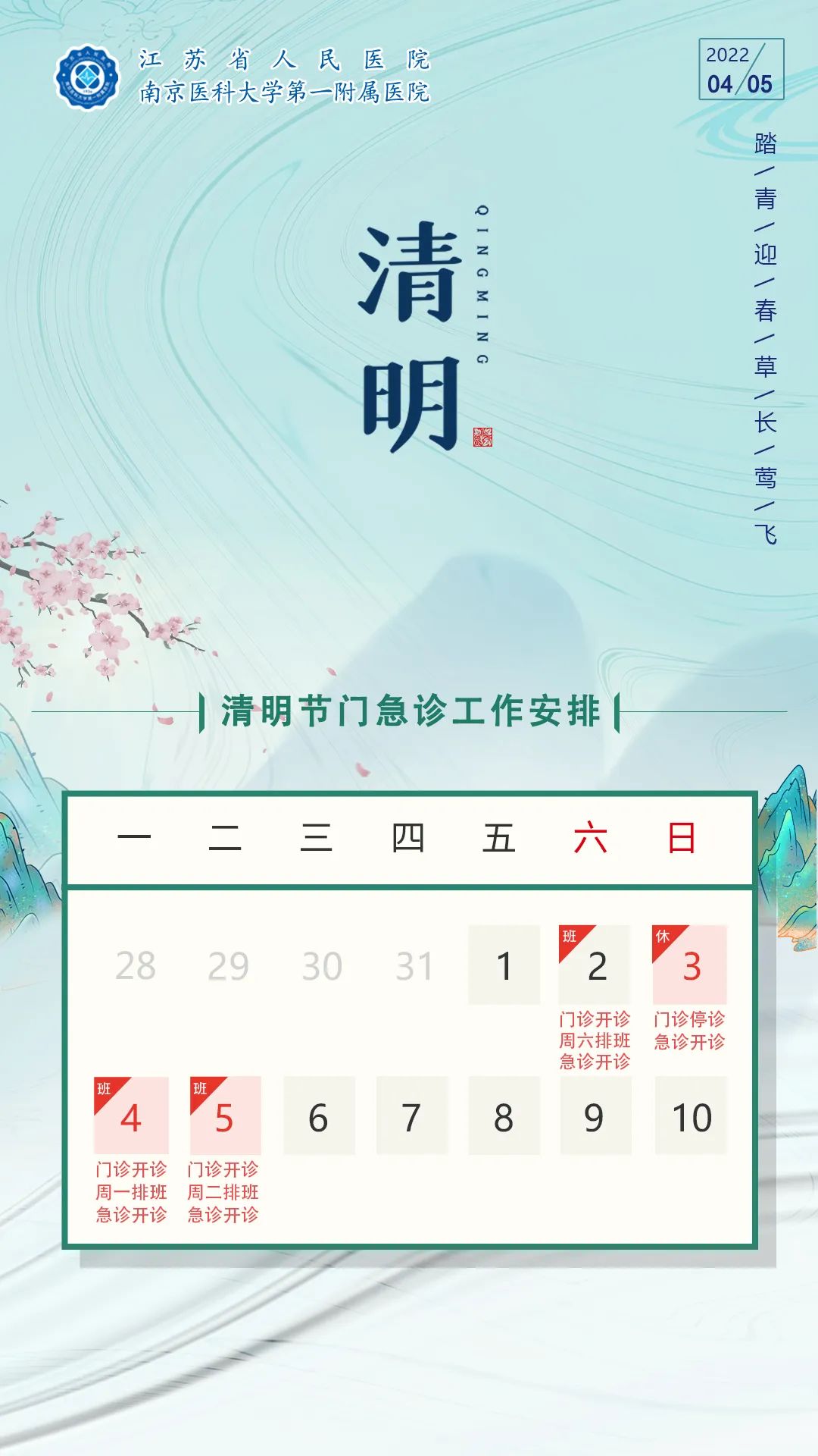 原标题:《温馨提示 | 省人医清明节门急诊工作安排》