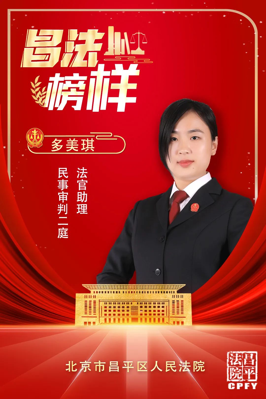 多美琪,中共党员,2017年进入北京市昌平区人民法院工作。