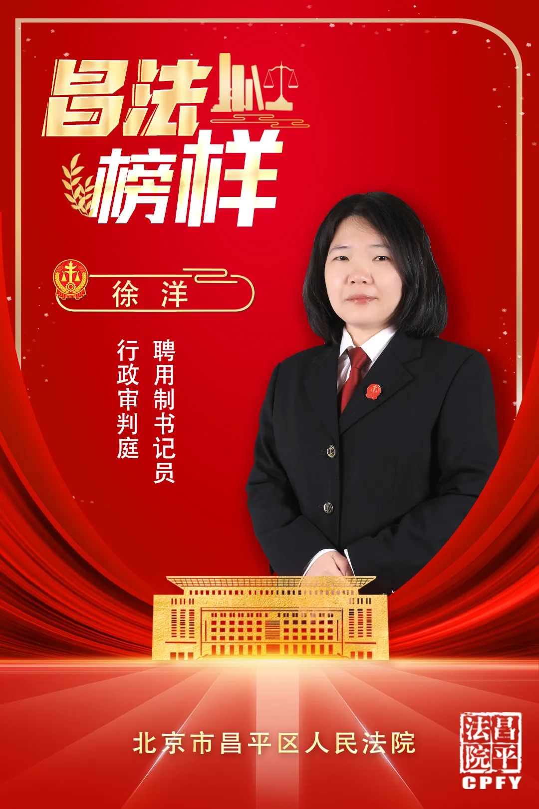 牟文洁,中共党员,2016年进入北京市昌平区人民法院工作。