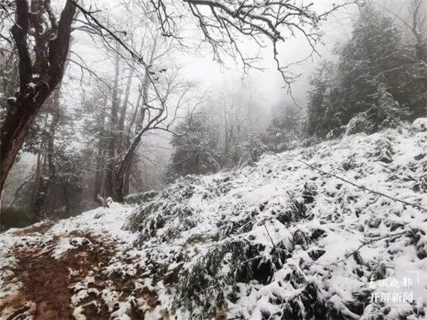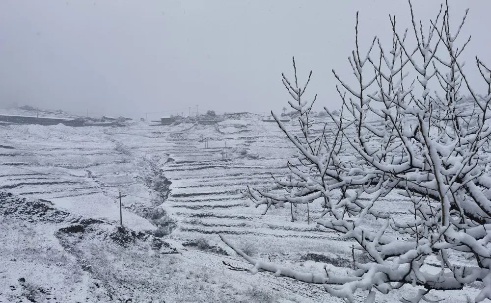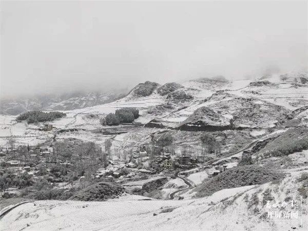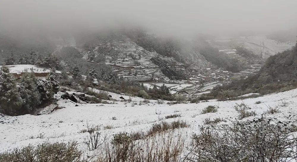 因受冷锋切变系统影响,丽江宁蒗县出现寒潮雨雪天气过程,海拔2400米以上山区出现积雪,白雪皑皑,遍地都裹上了银装。