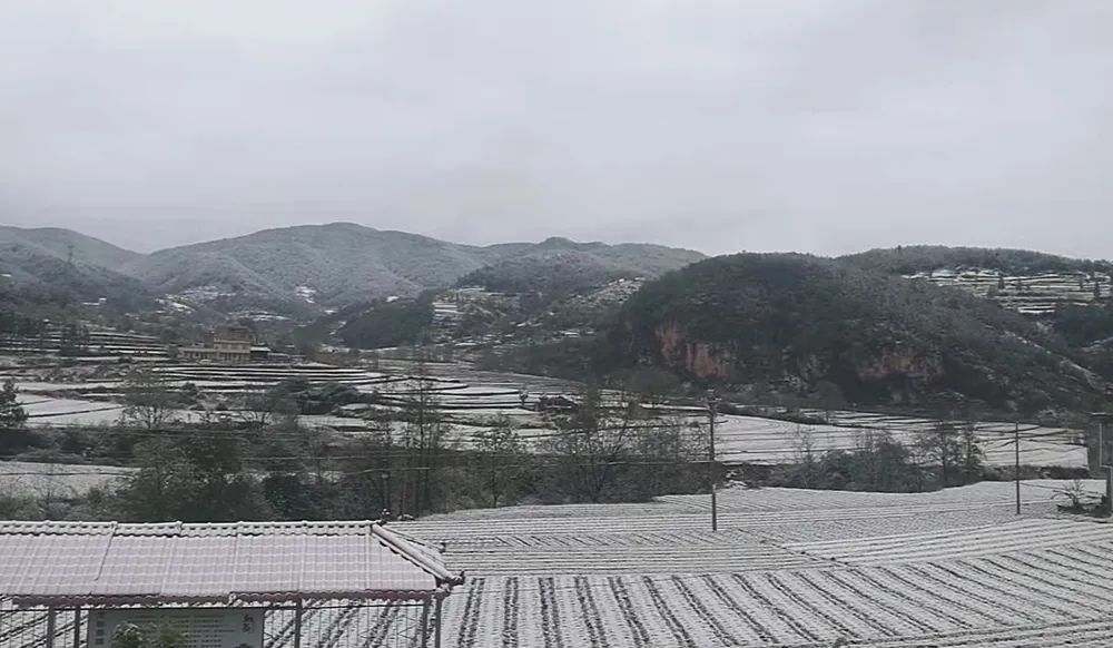 曲靖市大部出现降温降水的强倒春寒天气。会泽,宣威等地出现小雪或雨夹雪天气,大片白雪铺满田间。