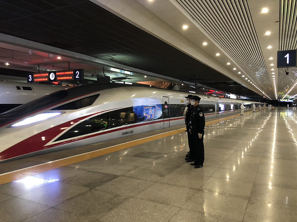 4月3日18时35分许,从武汉开来的G4009列车抵达上海虹桥火车站,随车而来的是湖北支援上海医疗队。
