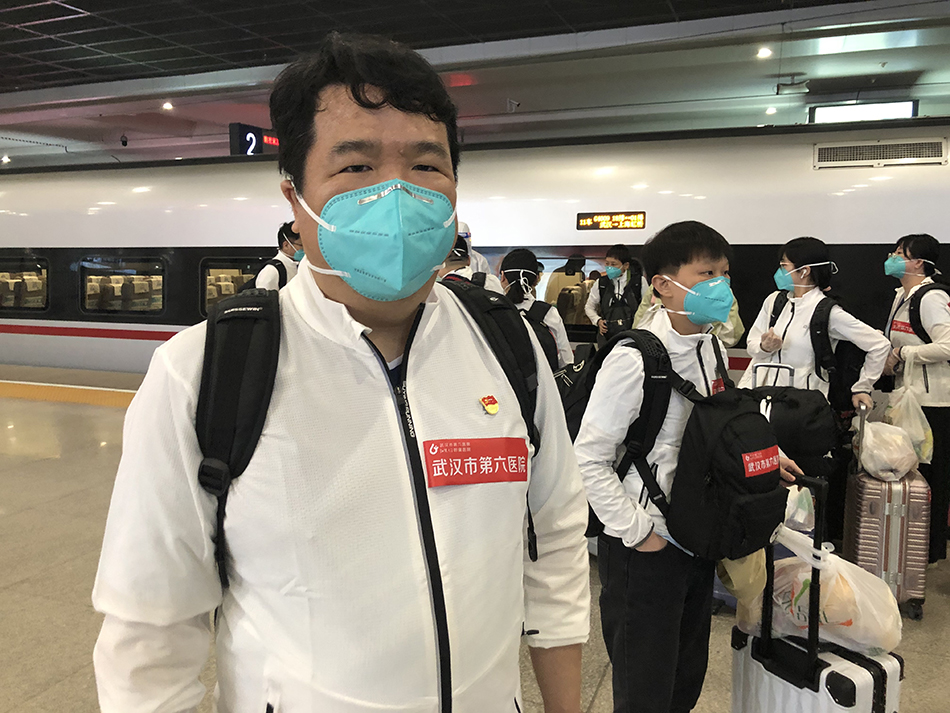 武汉市第六人民医院医疗队员江城人高马大,走在队伍前方。他告诉记者,该院医疗队共24人,包括呼吸内科、消化内科、神经内科、心血管内科的医生,还有各个临床科室的护理人员。