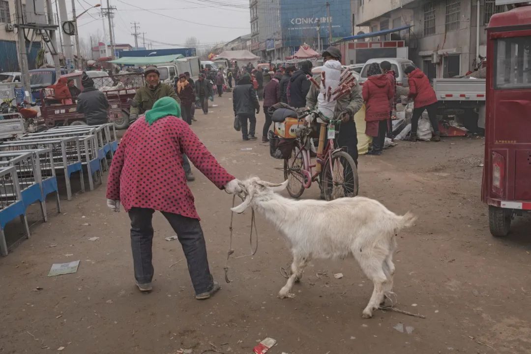 牲 畜农户家的那些驴、骡拉着农产品,猪、牛、羊、鸡、鸭不管是否愿意,都纷纷跟随主人去赶集,它们发出不同的叫声,渲染了集市上的交易气氛,可能它们知道自己会成为餐桌上的美味佳肴。