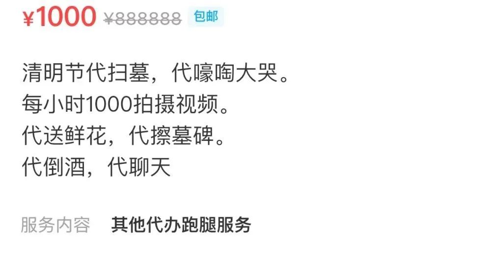 原标题:《代祭、代哭、代聊天……开价达千元以上,清明代祭扫业务你接受吗?》