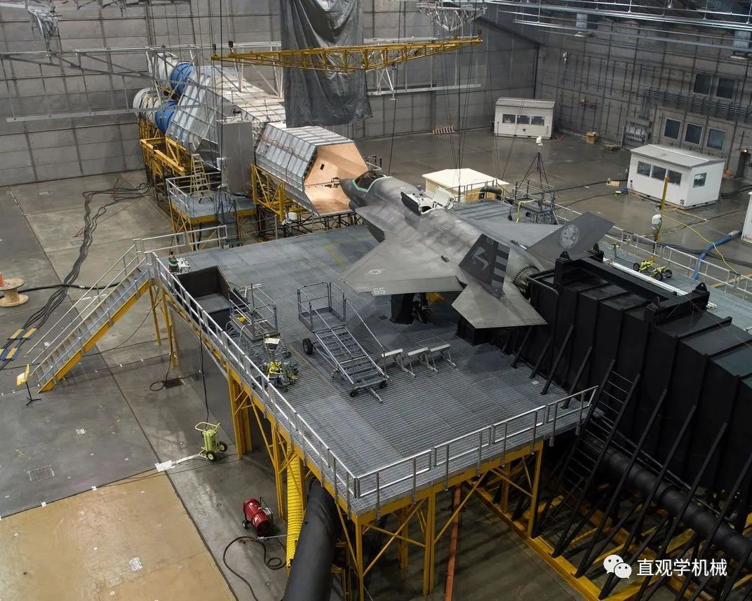 F-35B正在进行热试验在F-35B的热试验过程中,为了再现F-35B在亚利桑那州尤马海军陆战队航空站基地驾驶员全天坐在机库前的柏油场地的状态,进行了12h的模拟试验。实验舱内的飞机发动机保持停车,在达到模拟的最高温度后,接通飞机电源并起动发动机。