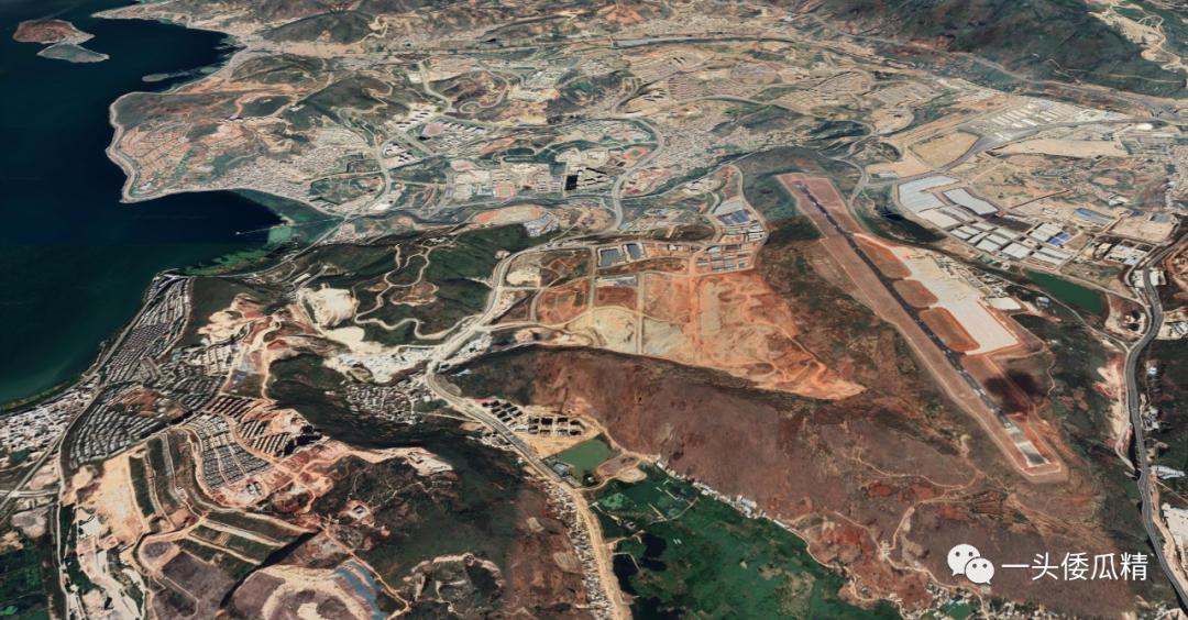 从大理机场可以看到,无论是机场跑道还是附近挖过的山体,都呈现出明显的褐红色。